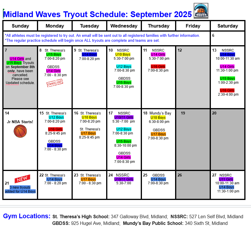 Midland Basketball is home to the Midland Waves rep teams, formerly Mystics & Magic! Our teams provide opportunities for boys and girls to play on competitive travelling teams. Team members are selected based on skills and teamwork.